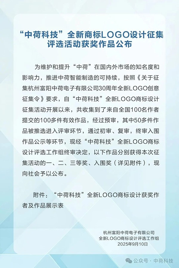自2025年6月,“中荷科技”全新LOGO商標(biāo)設(shè)計(jì)征集活動(dòng)開展以來,共收集到了來自全國100名作者提交的100多件有效作品,經(jīng)過預(yù)審,其中50多件作品被推選進(jìn)入評(píng)審環(huán)節(jié),通過初審、復(fù)審,終審入圍作品公示等環(huán)節(jié),現(xiàn)經(jīng)“中荷科技”全新LOGO商標(biāo)設(shè)計(jì)評(píng)選工作組終審決定,以下作品分別獲得本次征集活動(dòng)的一、二、三等獎(jiǎng)、入圍獎(jiǎng)(詳見附件),這些作品有來自北京、上海、廣州等大城市、也有來自株洲、重慶等西部城市?,F(xiàn)將這些獲獎(jiǎng)作品向社會(huì)予以公布。